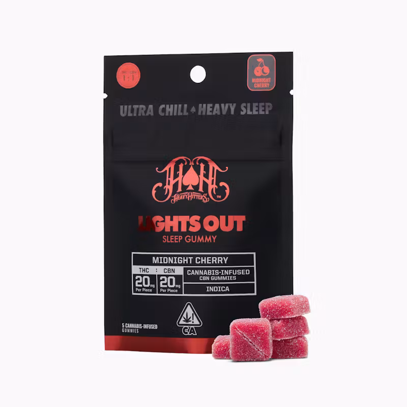 The ultimate knockout. Providing full-body relaxation and mental calmness, Lights Out CBN Sleep gummies put you down gently and keep you asleep throughout the night. A smooth blend of cherry and dark fruit flavors, these gummies are infused with a 1:1 ratio of Heavy Hitters Ultra Extract and pure CBN.