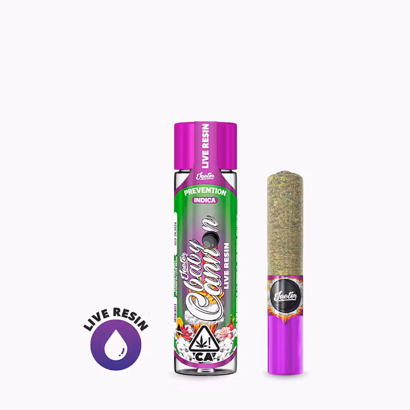 Jeeter’s Baby Cannon is 1.3 grams of exotic flower infused with live resin. Our connoisseurs ensure that the flower and live resin complement each other perfectly, and the wide ceramic crutch provides more air flow and clear flavor experience.