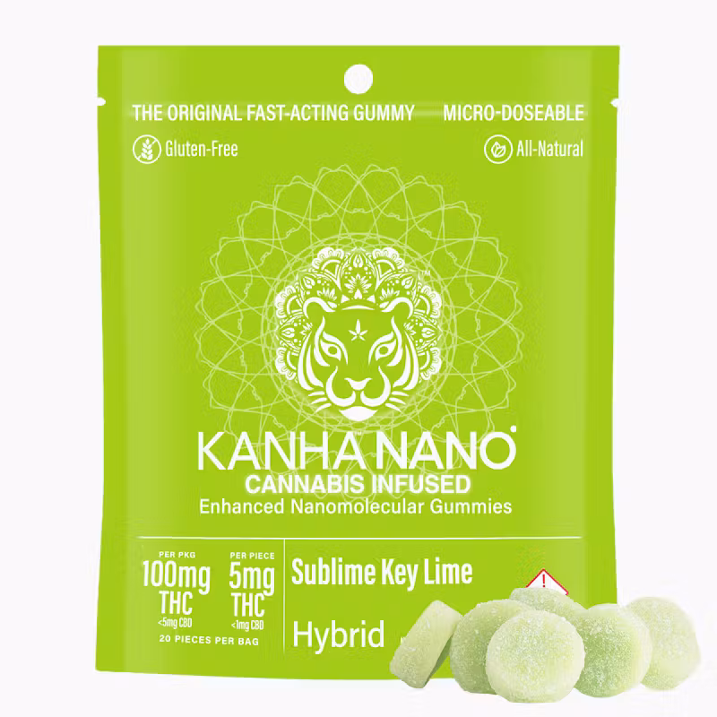 Key lime, a citrus fruit native to tropical Southeast Asia, caresses the taste buds with an aromatic blend of sweet, tart and acidic flavors. Paired with the finest hybrid indica oil and fruit-forward terpenes like limonene and myrcene, Sublime Key Lime Hybrid acts fast using our exclusive NANO technology for superior absorption and the rapid onset of effects. Sold in packages of 20, each gummy contains 5mg of THC, an ideal amount for microdosing or customizing your experience. KANHA, the first to introduce rapid-onset times, continues to lead the pack with NANO gummies.